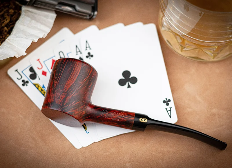 Η Chacom Flammée είναι μια πίπα με καμπύλη τέταρτου σε σχήμα «Πόκερ». Χάρη στην επίπεδη βάση της, μπορείτε να την ακουμπήσετε σε μια επίπεδη επιφάνεια χωρίς κίνδυνο να αναποδογυρίσει: δεν χρειάζεστε θήκη για την πίπα! Αυτή η πίπα από ξύλο φτέρης γεμάτη χαρακτήρα διαθέτει σωλήνα από μαύρο εβονίτη και έχει υπέροχο φλογισμένο σχέδιο. Η στρογγυλεμένη κάψα της προσφέρει επίσης ευχάριστη λαβή . Σημείωση: αυτή η Chacom με φλογισμένη όψη είναι εξοπλισμένη με ένα μεταλλικό φίλτρο που ξεβιδώνει.